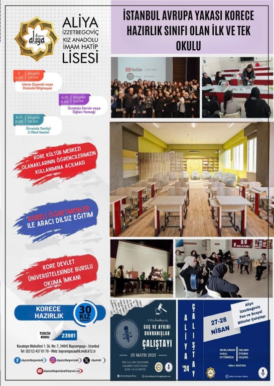 Okulumuzda 2025-2026 Eğitim Öğretim yılında Avrupa Yakasının ilk ve tek Korece Hazırlık Dil Sınıfı öğrenci kabulune 23981 tercih kodu ile başlıyor.